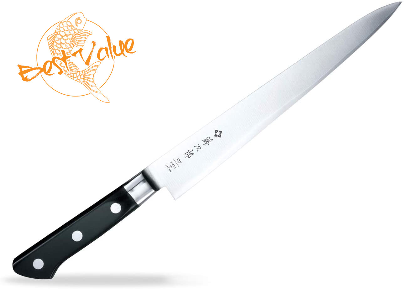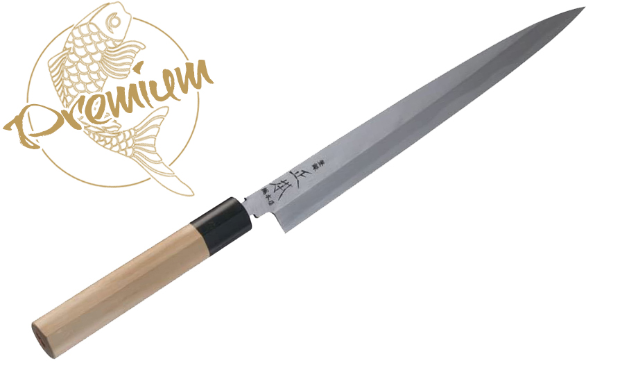 Very popular and reputable brand that makes quality knives. I know many experienced sushi chefs that swear by them. It's a high carbon steel blade which can be difficult to maintain and sharpen. But when done right, it'll keep an extremely sharp edge.